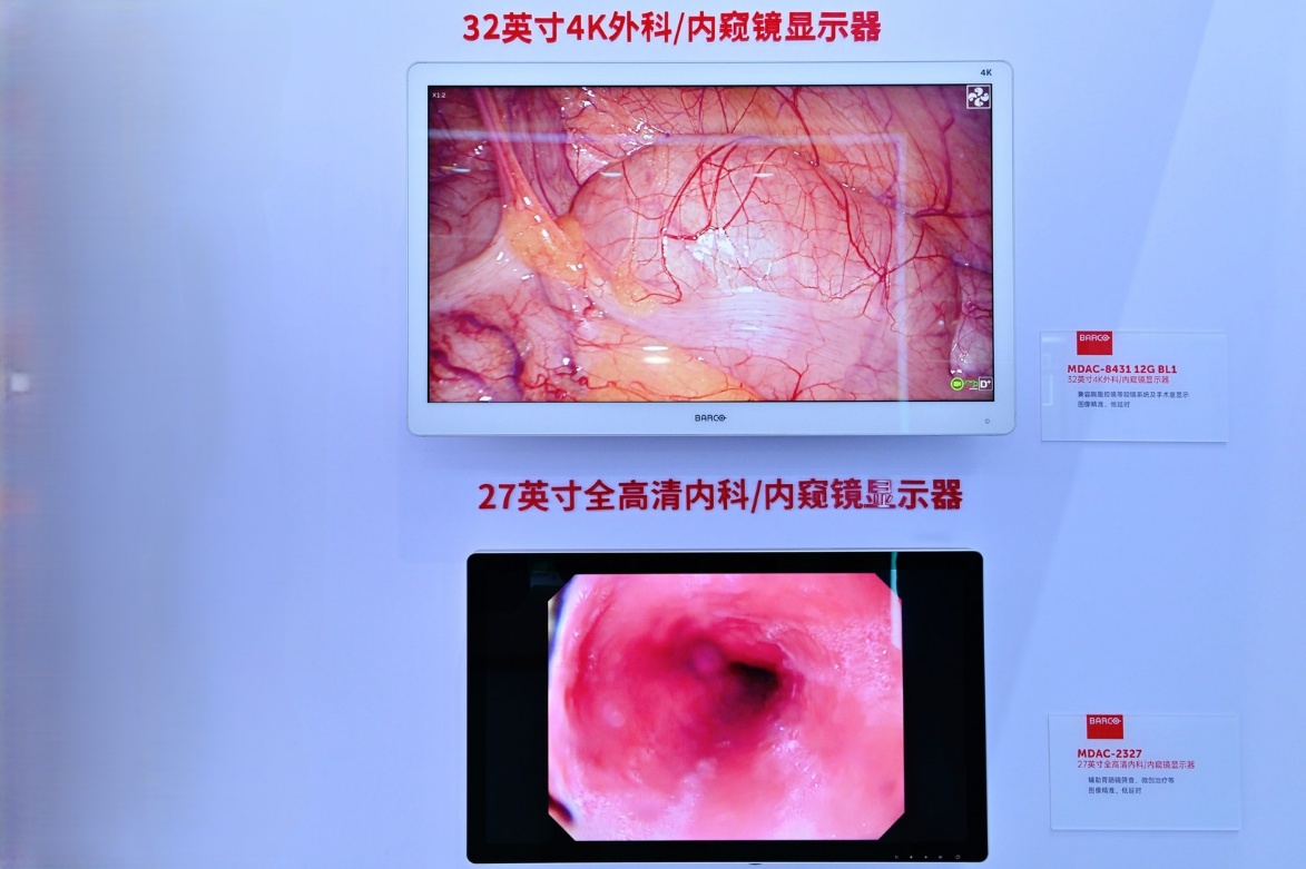 在现代医疗中,外科显示器作为外科医生精准诊断和手术操作的重要工具,扮演着举足轻重的角色。巴可在本届CMEF中重点展示了可以应用于内科的消化内镜中心27英寸FHD多模态医疗级ITE显示器MDAC-2327,4K外科手术和内窥镜显示器MDAC-8431和4K 3D外科医用监视器MDFC-8232,以及55英寸4K UHD多模态医疗级ITE显示器MDAC-8455等,满足现代手术室的高清、精准影像显示需求。